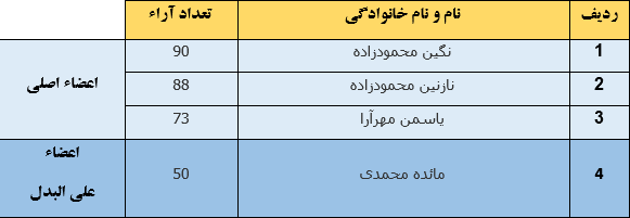• کمیته اجرایی انتخابات شورای صنفی دانشجویان دانشگاه کوثر در اطلاعیه شماره2 خود نتایج برگزاری انتخابات شورای صنفی دانشجویان را به شرح ذیل اعلام کرد: